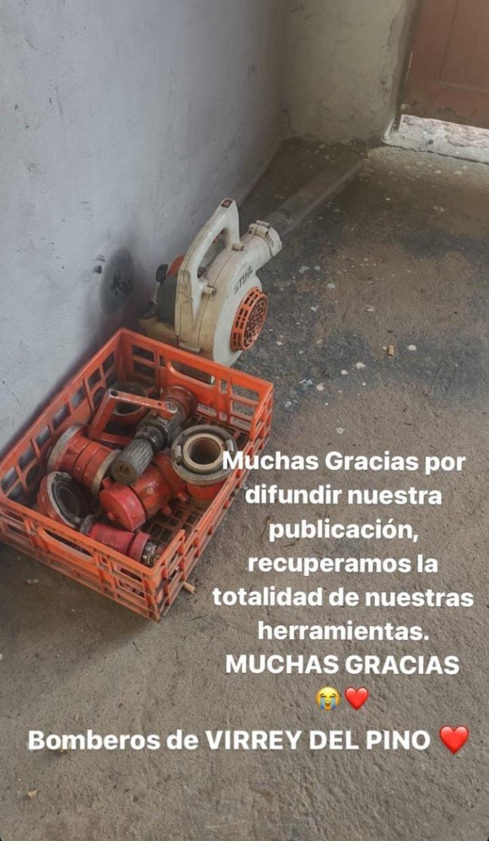 El Destacamento número 5 de los Bomberos Voluntarios de La Matanza, que se ubica en la localidad de Virrey del Pino, anunció que el domingo pasado pudo recuperar unas valiosas herramientas que había extraviado la semana pasada.