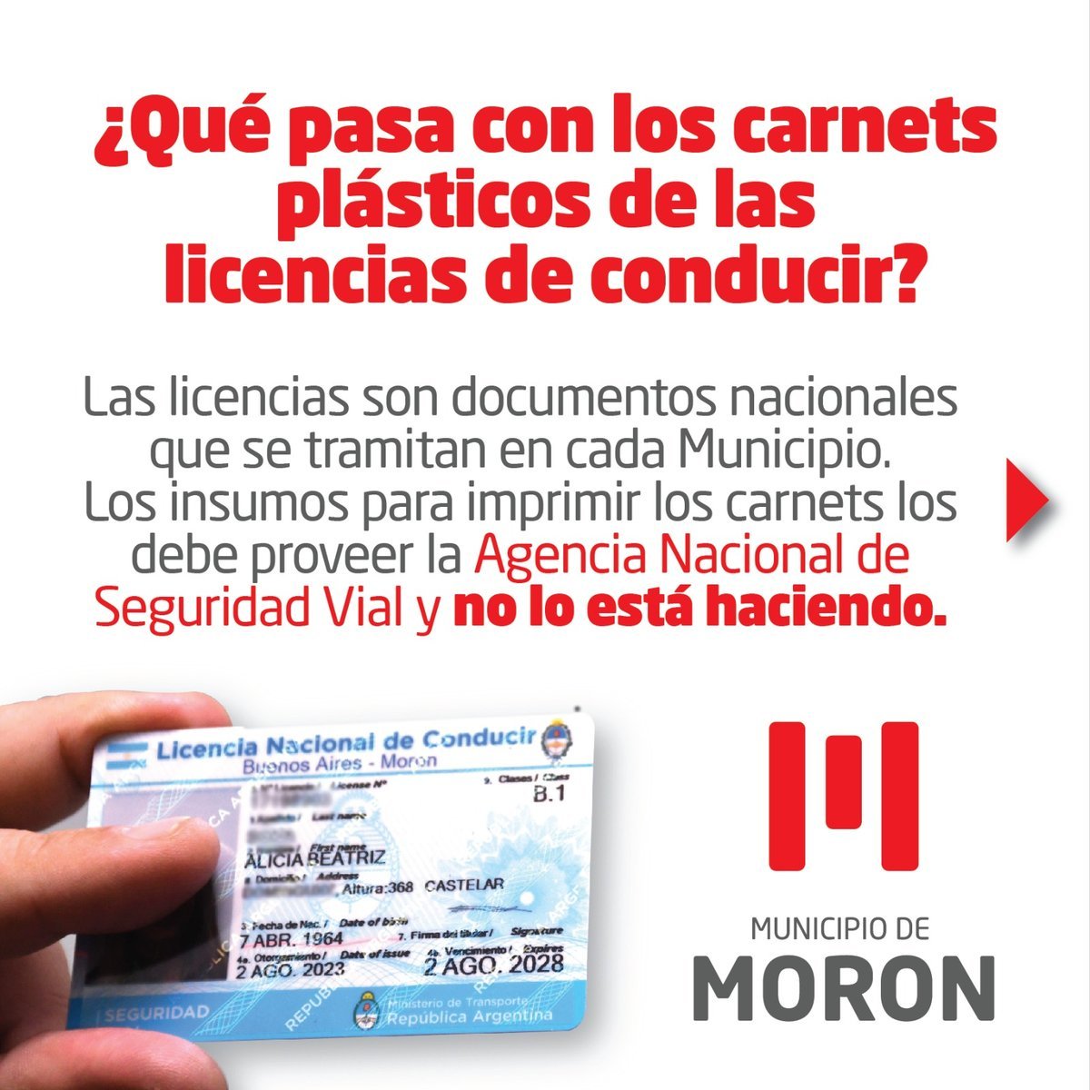 Morón extiende el plazo para circular con la licencia digital de conducir.