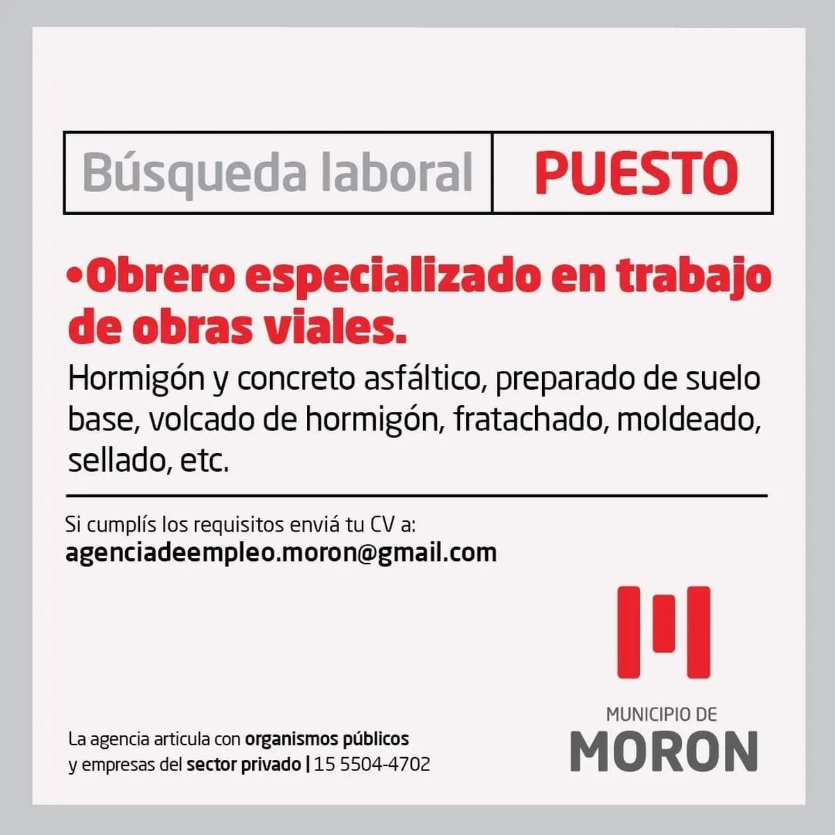 Más búsquedas laborales en Morón: puestos y requisitos