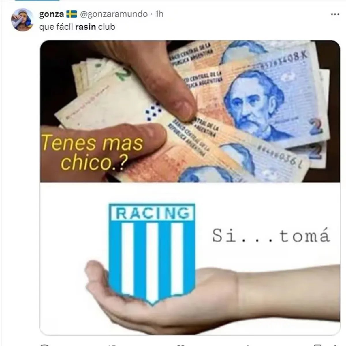 En un encuentro que mantuvo a los aficionados al borde de sus asientos durante los 90 minutos, Lucas Blondel abrió el marcador con un espectacular gol desde fuera del área a los 26 minutos del primer tiempo, pero la alegría fue efímera ya que Juan Fernando Quintero igualó para Racing apenas siete minutos después. De ambas situaciones hubo memes en redes, como así también de otras que no pasaron inadvertidas.