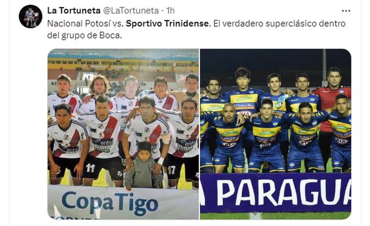El segundo, Sportivo Trinidense de Paraguay, que también tiene un escudo parecido al azul y oro y viste una camiseta muy parecida a la de Boca, en homenaje al equipo argentino. Junto con eso, los seguidores de River Plate aprovecharon la ocasión para burlarse de su rival histórico por no disputar la Copa Libertadores, que este año podría tener su final en Argentina, posiblemente en el estadio Mas Monumental.