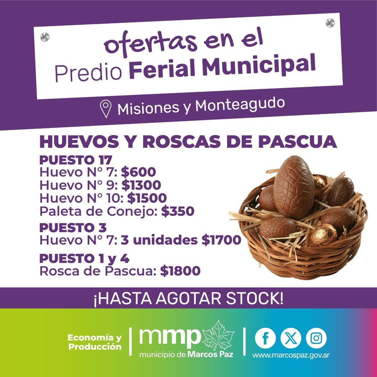Por otro lado, en el Predio Ferial, ubicado en Misiones y Monteagudo venderá los siguientes productos por Semana Santa: