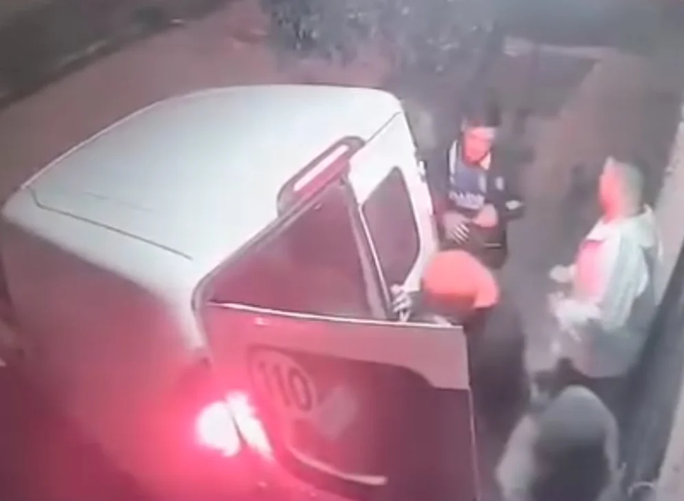 Las imágenes muestran como la víctima fue abordada por dos de los siete ladrones y uno de ellos lo golpeó con un arma de fuego en la cabeza para sacarle las llaves, mientras que otro le revisó los bolsillos y le quitó la billetera con sus documentos y el teléfono celular.