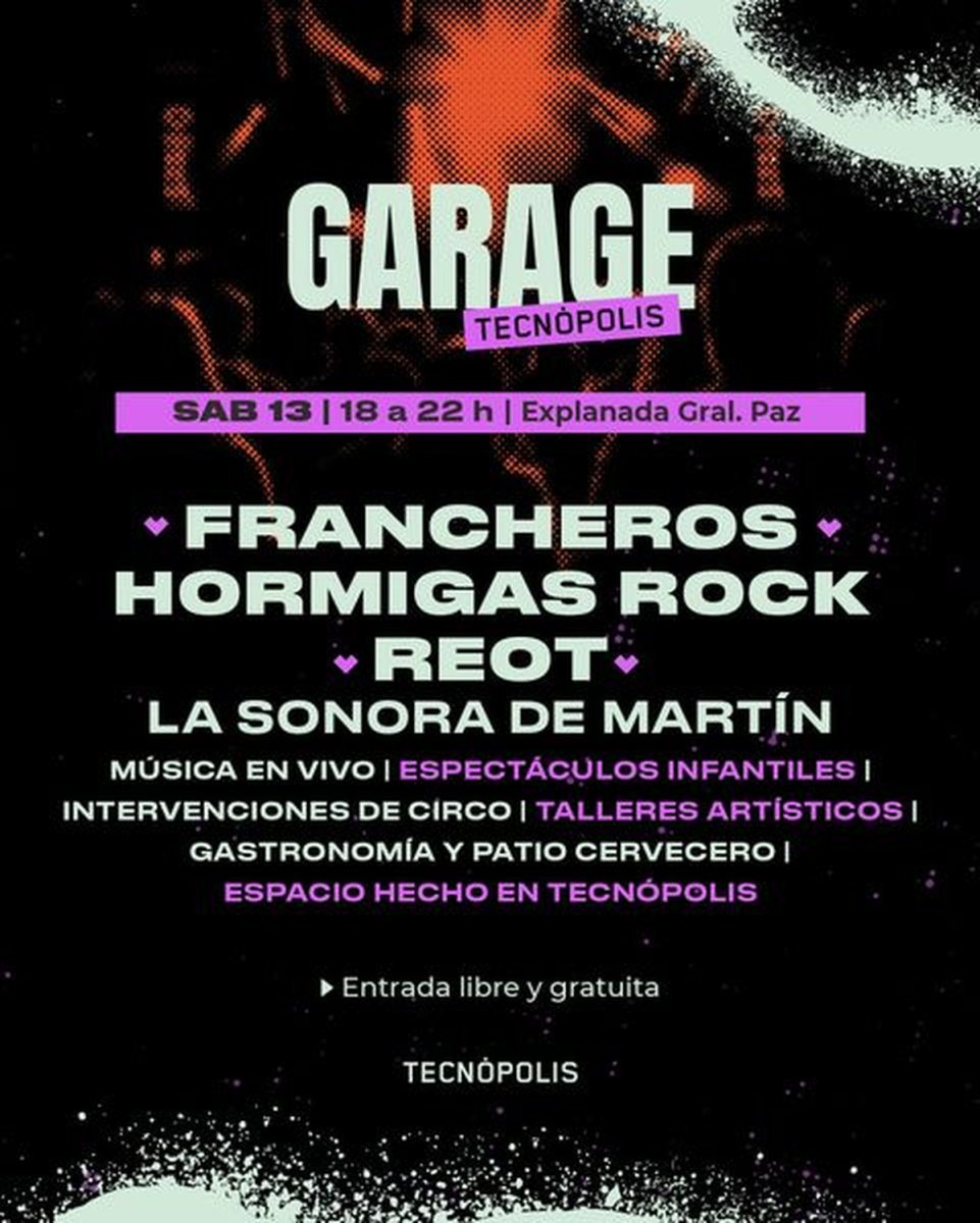"Garage Tecnópolis" es un espacio para que los artistas emergentes puedan expresar su arte y darse a conocer. El concepto garage tiene que ver con el lugar donde han comenzado grandes proyectos de la cultura, la ciencia y la tecnología. Asimismo, informaron que, por el momento, sólo se abre el espacio de la Explanada de General Paz. "Próximamente, realizaremos nuevas aperturas a otros sectores del predio para que podamos disfrutar Tecnópolis todo el año", indicaron a través de las redes sociales.