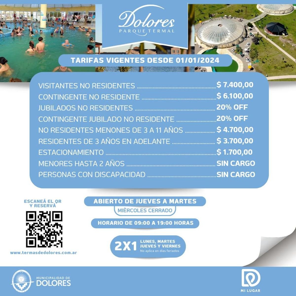 Cabe señalar que este destino, ideal para el turismo, ofrece aguas termales saladas y dulces, convirtiéndose en un importante punto turístico para Dolores y se encuentra inmerso en un extenso terrero de 44 hectáreas, con una variedad de piscinas de recreación y aguas termales.