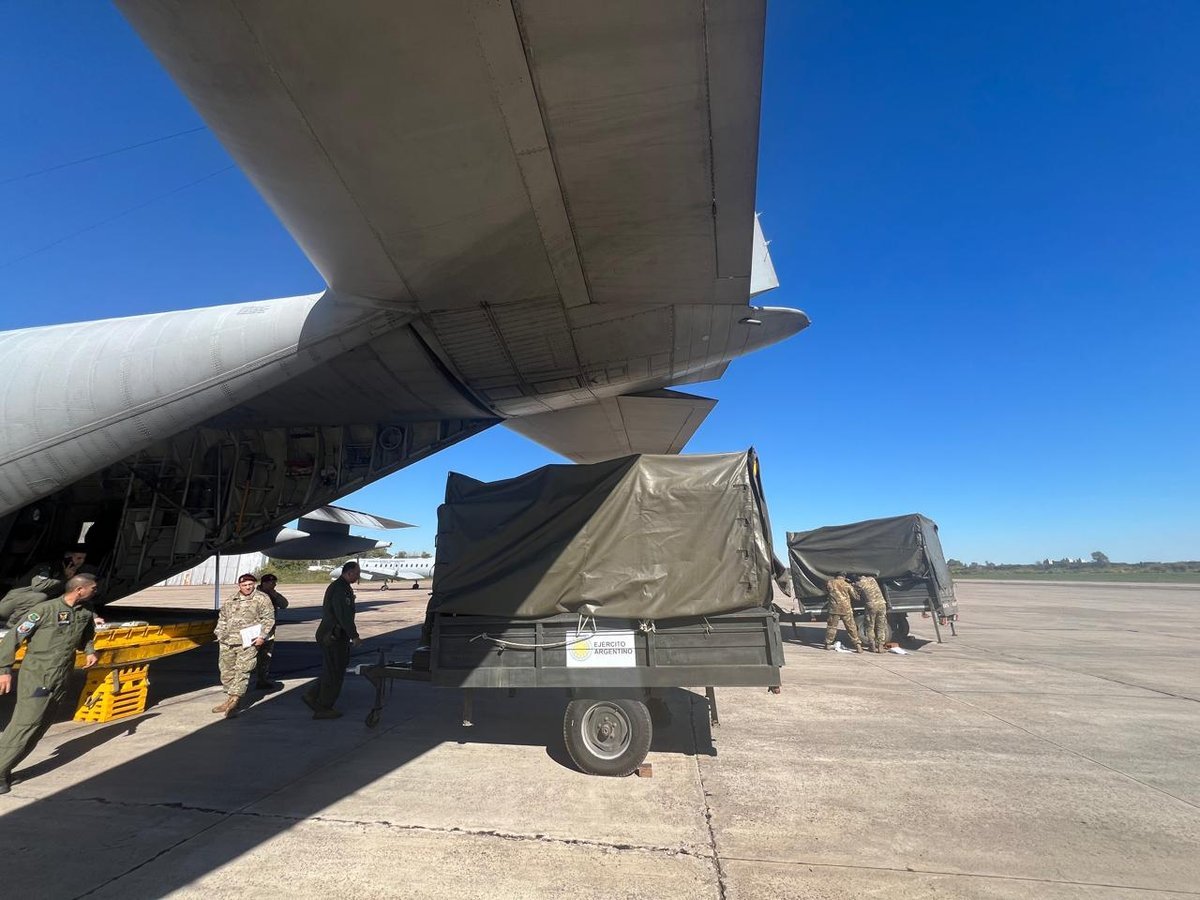 Esta comisión, liderada por la teniente Lucía Muñoz y los siete suboficiales que la acompañan, voló hacia la ciudad de Canoas a bordo de uno de los Hércules C-130 que tiene la Fuerza Aérea Argentina (FAA) en la mencionada guarnición del Oeste, ya que también trasladaron dos plantas potabilizadoras.