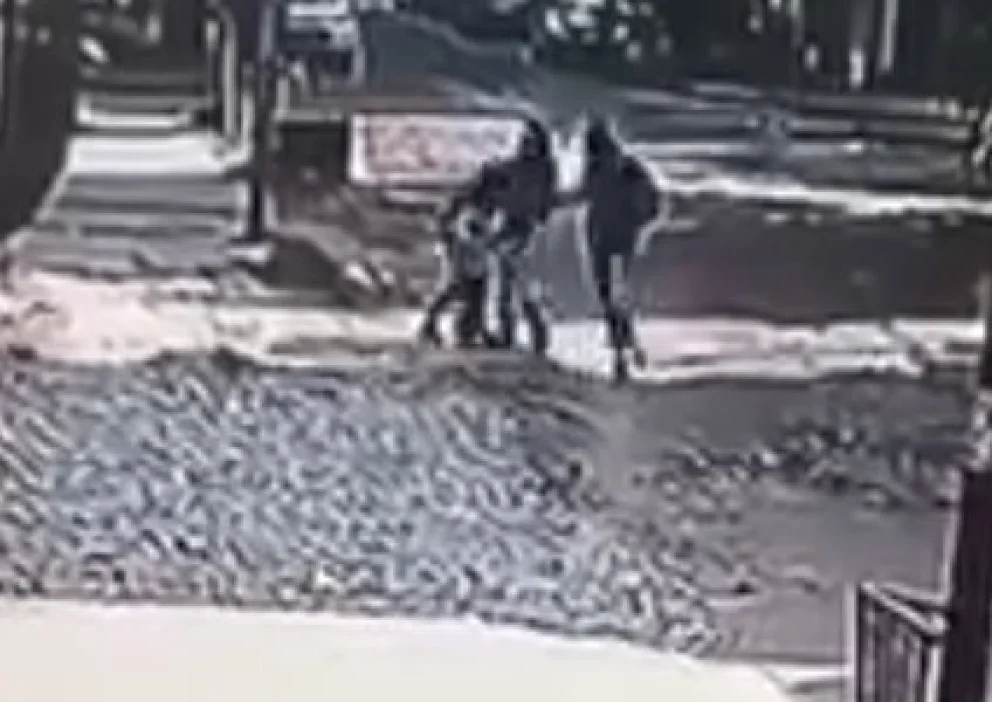 Las imágenes muestran como la mujer andaba de la mano de su nene después de la salida del colegio primario y de repente se le aparecieron dos delincuentes encapuchados, que inmediatamente la amenazaron para que les entregue todo lo que tenía a mano.