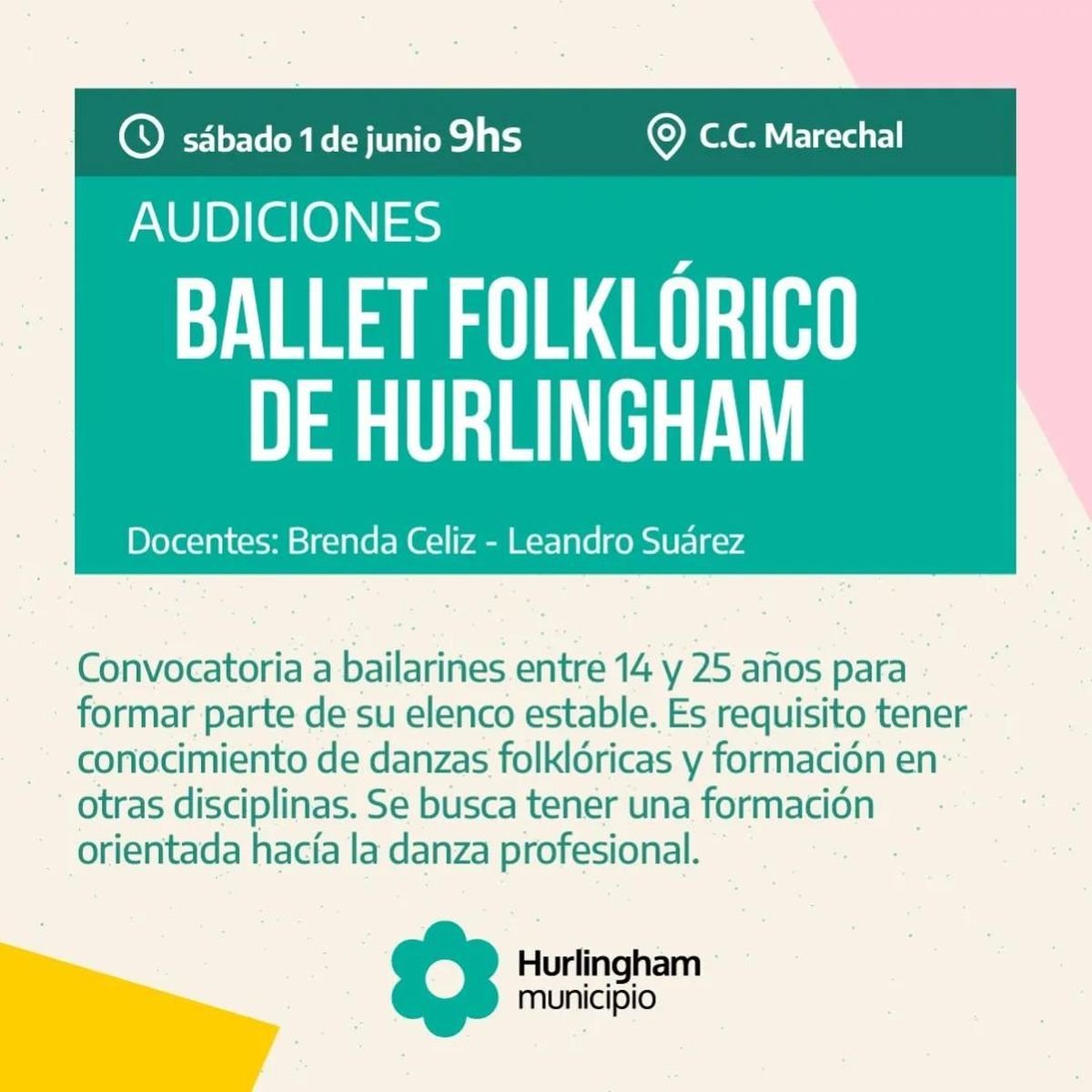Por otro lado, desde el área de Cultura anunciaron que este sábado 1 de junio a partir de las 09:00 horas los profesores Leandro Suárez y Brenda Celiz llevarán a cabo una convocatoria a bailarines entre 14 y 25 años para formar parte del elenco del Ballet Folklórico. Las audiciones se realizarán en el Centro Cultural Leopoldo Marechal, ubicado en Av. Vergara 2318.