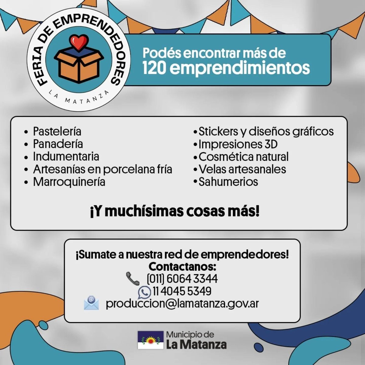 Por otro lado, las autoridades del partido recordaron que los interesados en ser parte del programa deben contactarse a: 011 6064-3344; 11 4045-5349 o al mail [email protected]. Allí, podrán evacuar sus dudas y se les indicará que pasos seguir para sumarse a las Ferias de Emprendedores. Además, este fin de semana habrá una nueva edición de "Finde en tu barrio" en La Matanza: shows, feria, actividades y más.