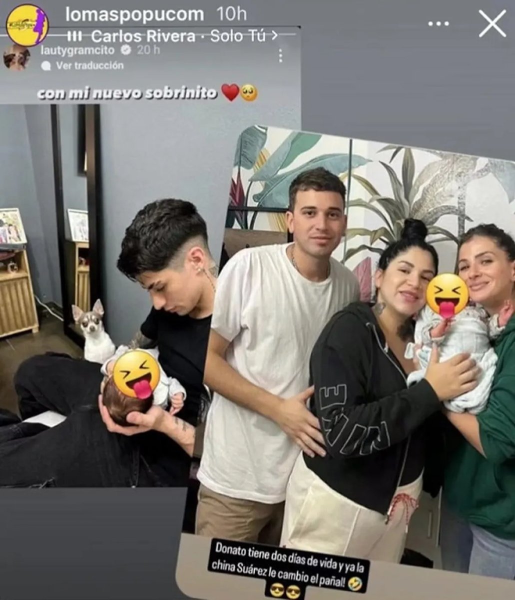 La encarga de compartir la foto en redes sociales fue Cande Mazzone: "Lo subió Lo más popu. La hermana de Lauty tuvo un hijo, hablé un par de veces con ella, es divina. A full esté vínculo, van re bien la China y Lauty Gram", sostuvo la periodista.