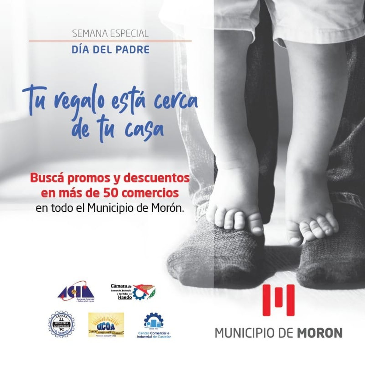 Por su parte, el Municipio de Morón también ofrecerá, durante toda la semana especial del Día del Padre, diferentes ofertas y promociones. Además, de este evento, participan la Cámara e Industria de Comercio de El Palomar, el Centro Comercial e Industrial de Castelar, la Cámara de Comercio de Haedo