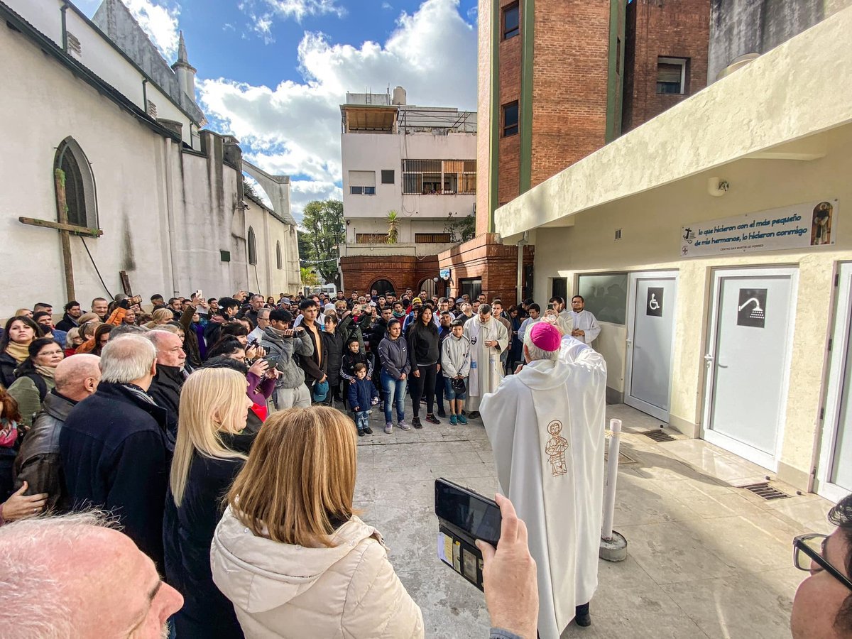 El mismo cuenta con duchas, baños y el servicio de desayuno, almuerzo y cena para todos aquellos que se acerquen y recibió la bendición del monseñor y obispo local, Eduardo Horacio García, tras una misa en la que también estuvieron presentes la secretaria de Gobierno del Estado comunal, Silvia Francese, y otros funcionarios.