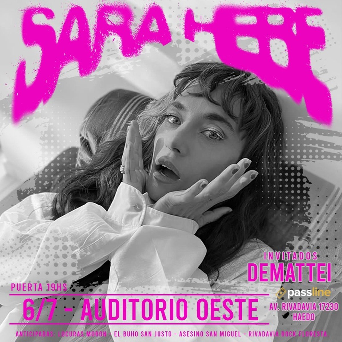 La cantante y compositora, Sara Hebe, sin dudas una de las referentes principales del rap, sus derivados y la música urbana del país, brindará su primer show en el Auditorio Oeste este sábado 6 de julio, a partir de las 19 horas, en Avenida Rivadavia 17320, en la localidad bonaerense de Haedo, partido de Morón, donde compartirá escenario con Demattei.