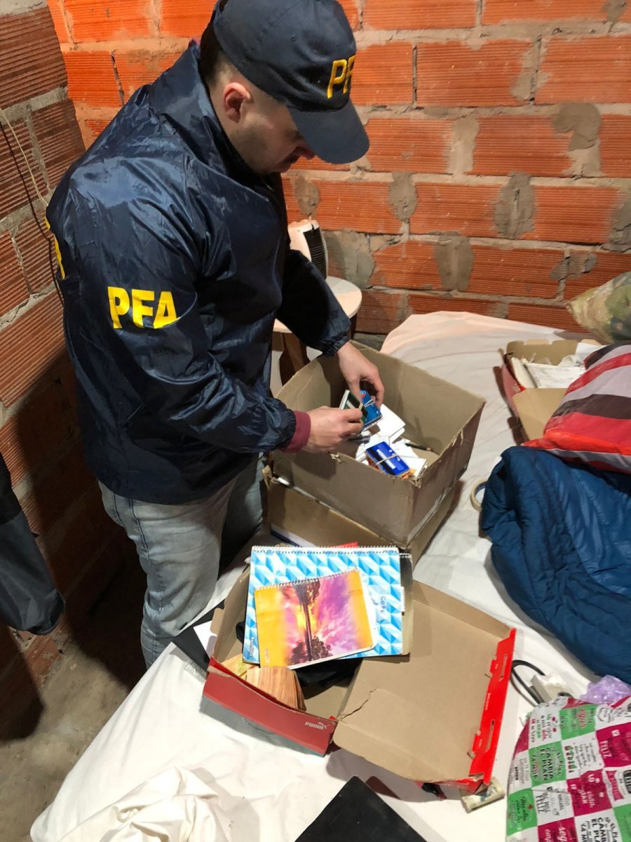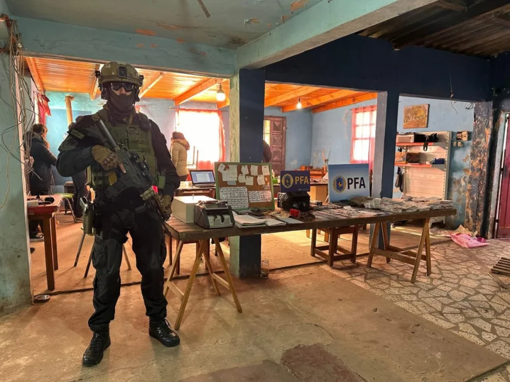 En total quedaron esposadas 25 personas y un menor de edad fue demorado, además de haberles secuestrado 8.350.670 pesos y 36.300 dólares en efectivo, 66 celulares, 17 vehículos, una pistola semiautomática, cuadernos, comprobantes bancarios, fotocopias del DNI, computadoras y elementos varios de almacenamiento de datos.