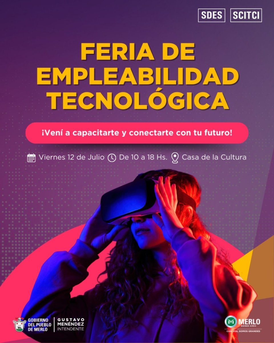 La feria se llevará a cabo este viernes, 12 de julio, de 10:00 a 18:00 horas en la Casa de la Cultura de Merlo, ubicada en Av. Calle Real y Padre Espinal, allí la comunidad podrá participar de charlas y cursos diseñados para impulsar su carrera en tecnología, para aprender y conectar con los avances de cara al futuro.