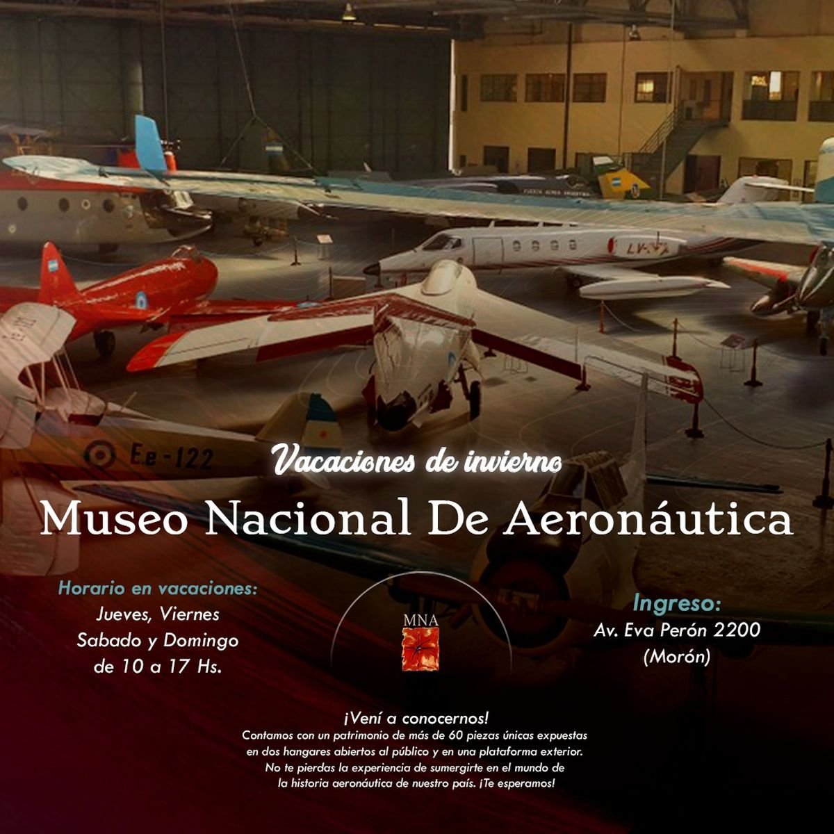 El lunes 15 de julio comienzan las vacaciones de invierno que se extenderán hasta el 28 de julio, y frente a esto las autoridades del Museo Nacional de Aeronáutica ubicado en Morón, dieron a conocer en qué horarios y días abrirán sus puertas.