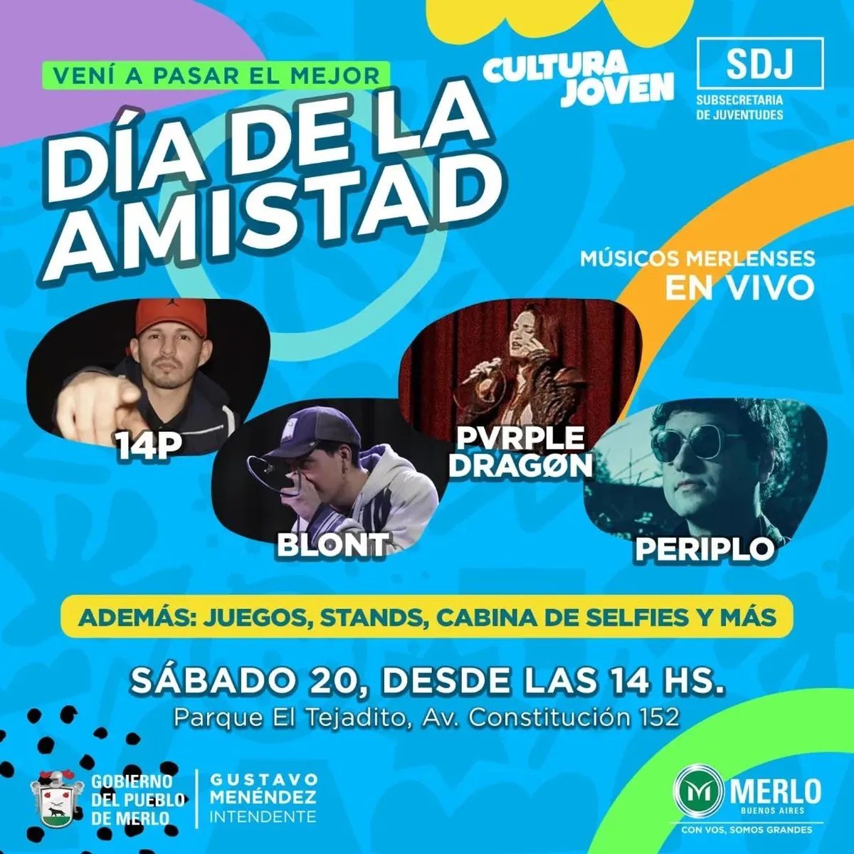El próximo sábado, 20 de julio, se conmemora el Día de la Amistad y desde la Subsecretaría de Juventudes del Municipio diagramaron un evento para festejarlo con shows en vivo de artistas locales, cabina de fotos, feria de emprendedores y más propuestas gratis.
