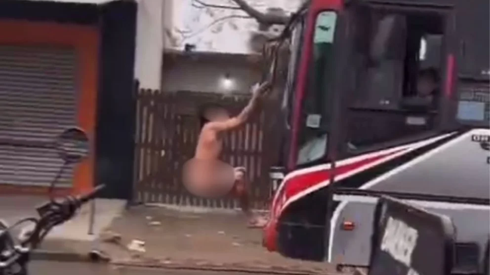 Sin embargo, unos segundos después el intrépido nudista se bajó del transporte mayor y finalizó su alocada aventura tendido en el piso, boca arriba y en medio de la lluvia, razón por la que algunos vecinos especularon con que se trate de un sujeto con algún tipo de problema mental.