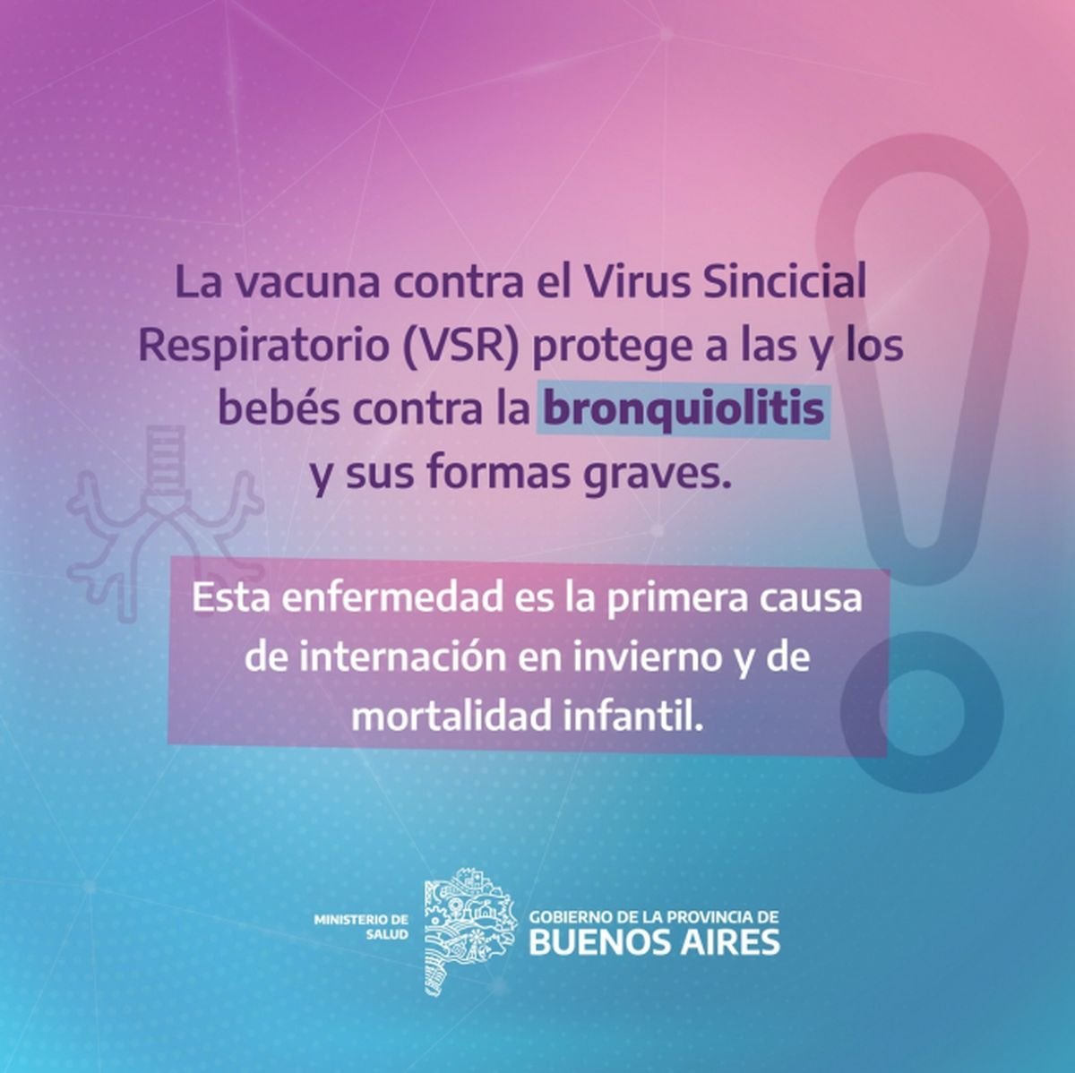 A través de un comunicado oficial, las autoridades del Ministerio de Salud de la Provincia de Buenos Aires anunciaron que prorrogaron hasta el 31 de agosto la vacuna contra el Virus Sincicial Respiratorio que previene la bronquiolitis y deben aplicarse las personas embarazadas de entre 32 y 36 semanas de gestación.
