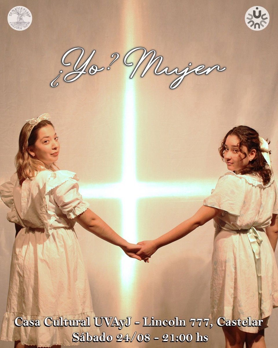 La obra de teatro "¿Yo? Mujer" se presentará en la localidad bonaerense de Castelar, partido de Morón. La misma se podrá disfrutar el sábado 24 de agosto y el 28 de septiembre, a las 21 horas, en el Centro Cultural UVAYJ (Lincoln 777).