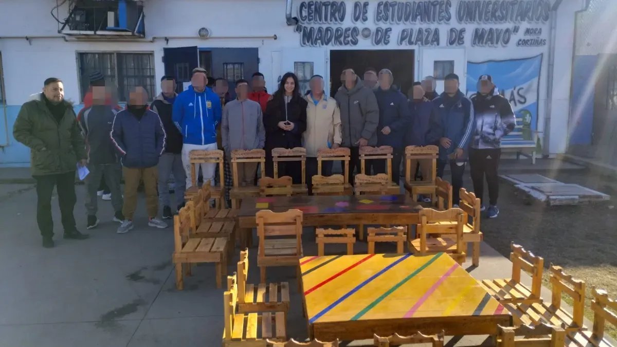 Se trata de un total de 50 sillas de madera que fueron a parar al Jardín de Infantes número 953 "Clotilde Guillen de Rezzano", situado en la ciudad de Gonnet, y que se construyeron con las manos de 20 internos en el marco de un taller tratamental de carpintería que se dicta en la citada cárcel.