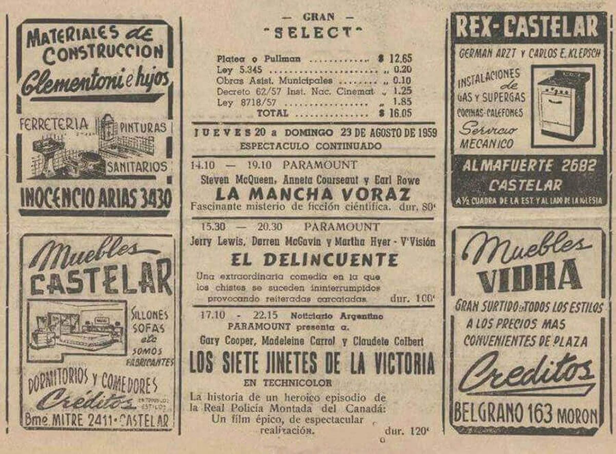 Conocé los cines que funcionaban en la localidad de Castelar, partido de Morón, zona oeste del Gran Buenos Aires.
