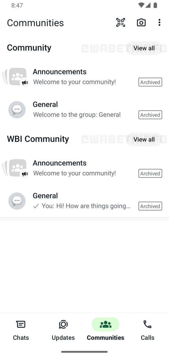 Este nuevo diseño tiene como objetivo mostrar más comunidades en una sola página. La interfaz anterior requería que los usuarios se desplazaran por una larga lista para encontrar una comunidad o un chat grupal, ya que cada sección cubría una gran parte de la pantalla. En el diseño actualizado, cada sección de la comunidad seguirá mostrando ciertos chats grupales, pero se agregará un botón dedicado junto al nombre de la comunidad, lo que permitirá a los usuarios ver todos los chats grupales vinculados a esa comunidad con un solo toque.