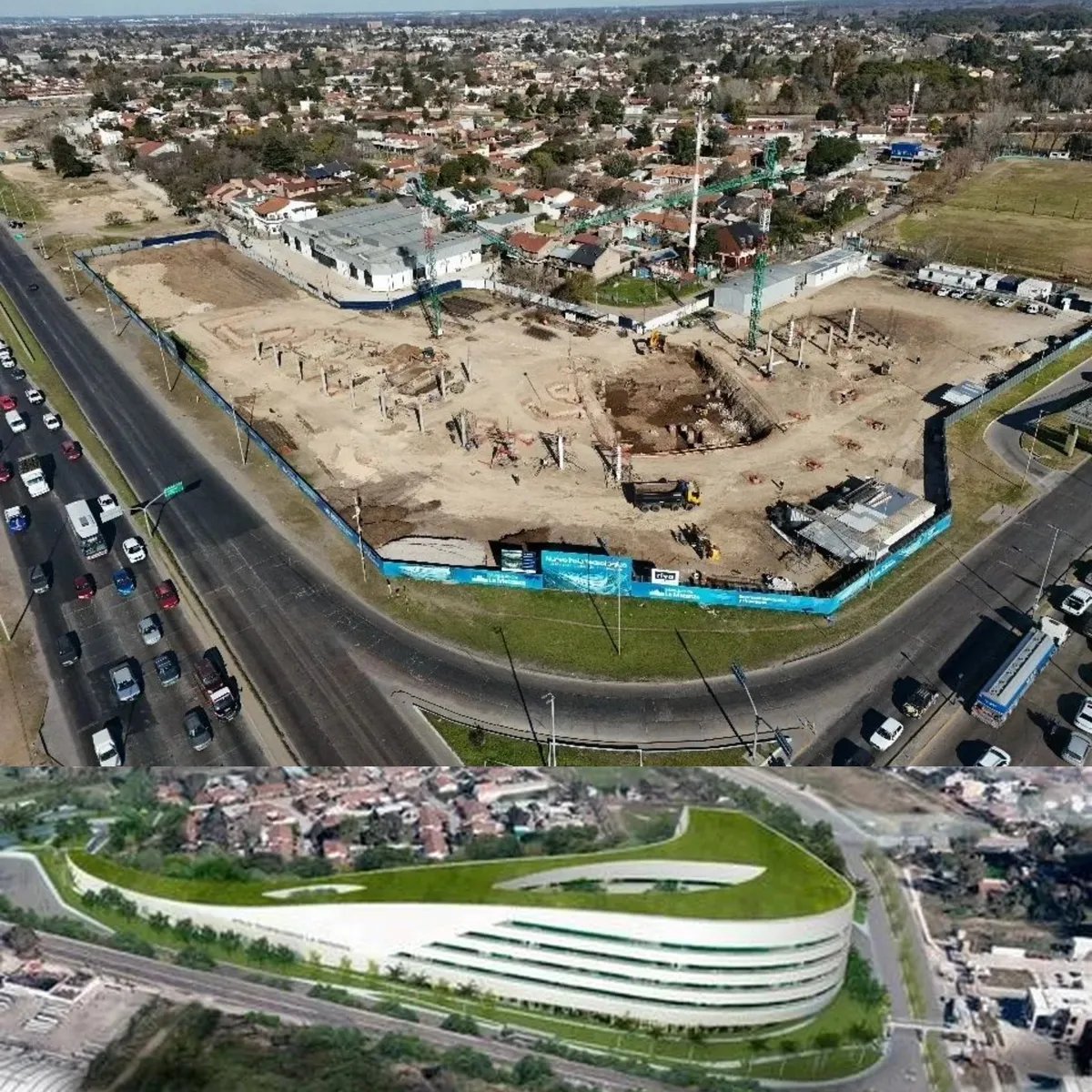 Este ambicioso complejo, cuya ubicación estará en el cruce de las rutas provinciales número 4 (Avenida Diego Armando Maradona y ex Monseñor Bufano y Camino de Cintura) y 21, a metros del Hospital Zonal General de Agudos "Doctor Alberto Edgardo Balestrini", comenzó a emplazarse de manera formal a mediados del año pasado, pero recién ahora colocaron las bases y las columnas de la eventual estructura del edificio.