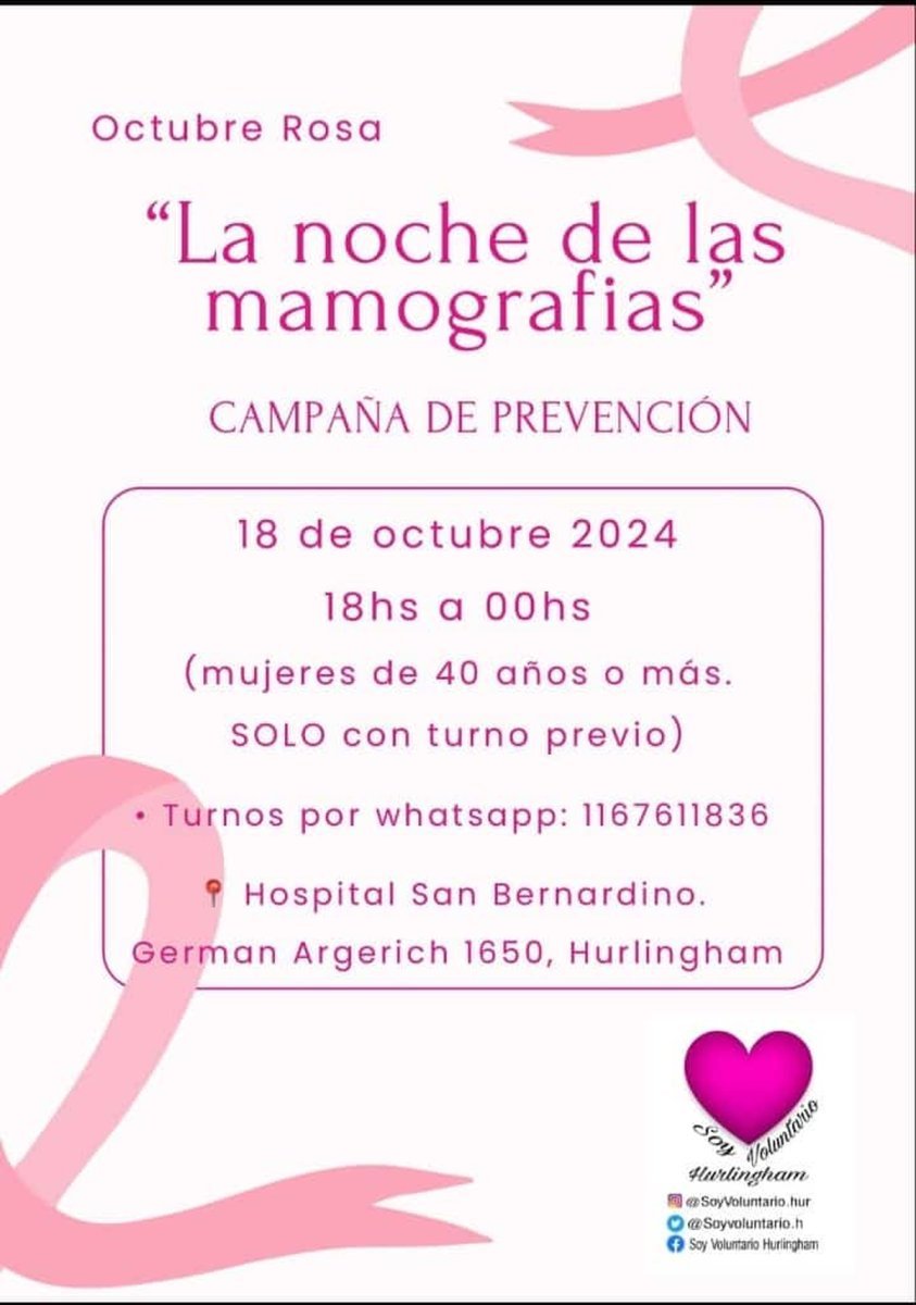 Dos hospitales del Oeste se sumarán a la Noche de las Mamografías