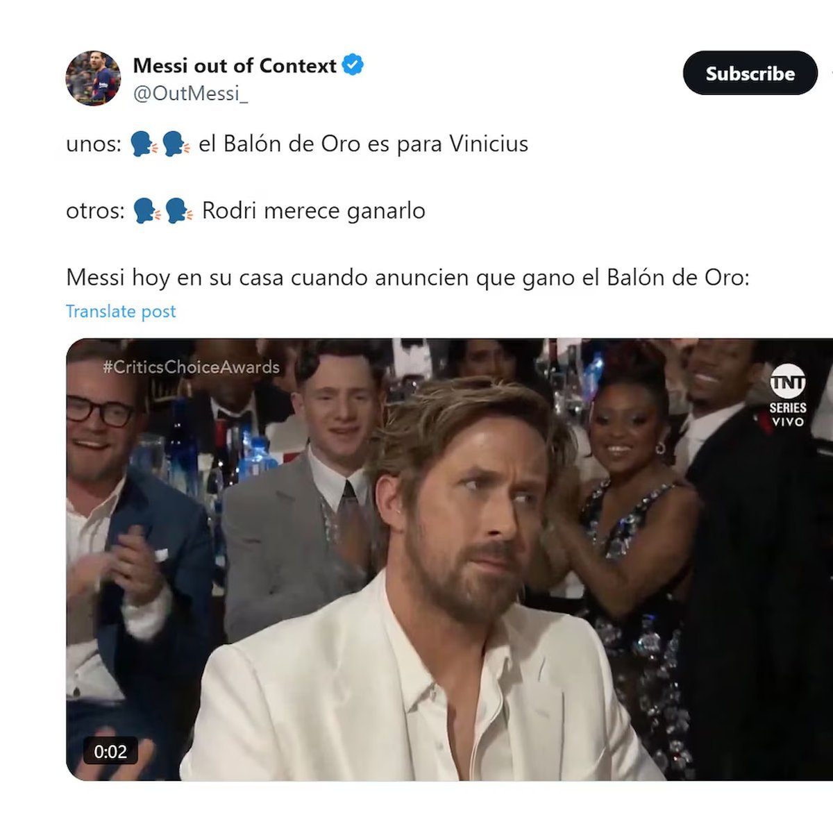 Las redes explotaron con memes luego de la gala del Balón de Oro. Foto: Captura.