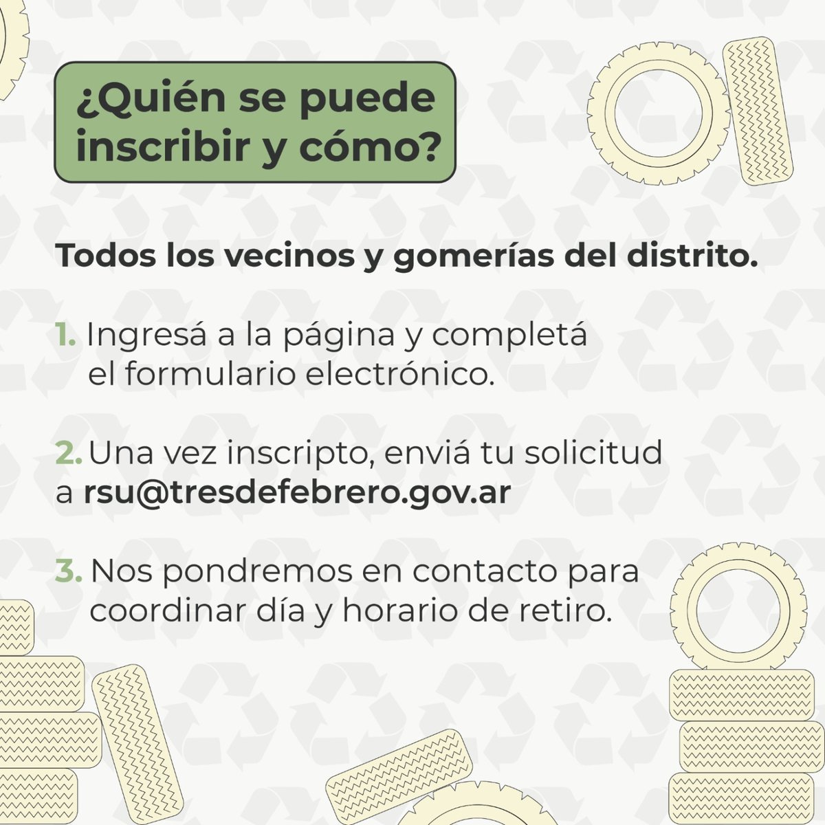 Este nuevo servicio busca "darles una disposición adecuada, proteger el ambiente y prevenir criaderos de dengue" en el Distrito. Todo lo que tenés que saber. Tres de Febrero y Nación se unen para promover la inserción de trabajadores desocupados