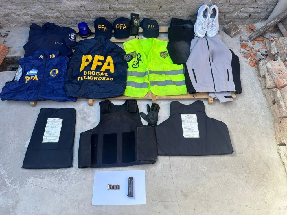 De esta manera, los efectivos incautaron diversos elementos utilizados en los hurtos que los tuvieron como participantes, tales como teléfonos celulares, indumentaria policial con la inscripción "PFA", una baliza, esposas y un chaleco balístico que poseía un pedido de secuestro vigente desde 2010.
