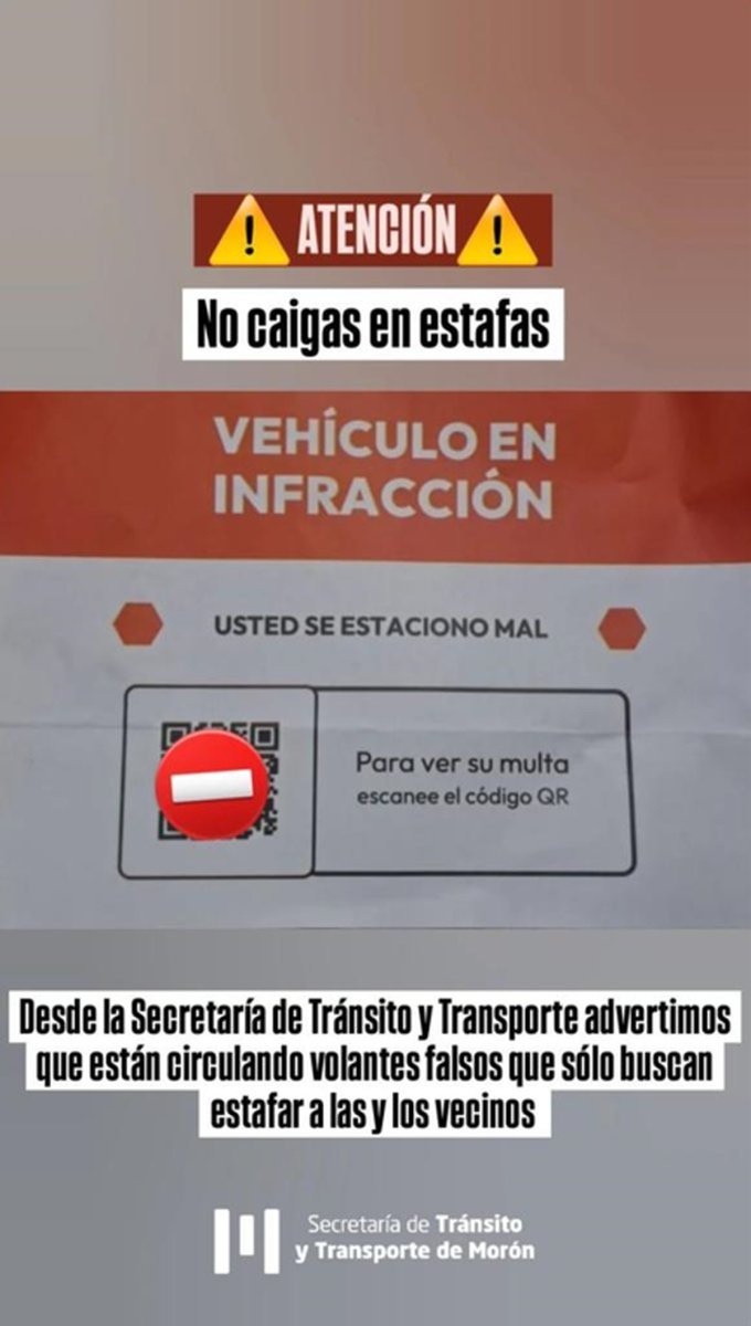 Al propagarse la estafa, desde la Secretaría de Tránsito y Transporte del Municipio de Morón explicaron: "Advertimos que están circulando volantes falsos que sólo buscan estafar a los vecinos", y pidieron no escanear dicho código.