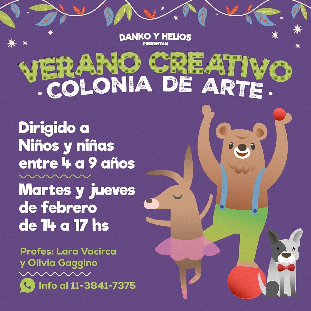 La colonia se desarrollará todos los martes y jueves de febrero, de 14 a 17 horas, alternando clases entre el Cine Teatro Helios y Danko (Blvd. San Martín 3076, Ciudad Jardín, El Palomar). Allí, se desarrollarán juegos teatrales, canto y música, creación experimental, taller de cine, expresión corporal, proyección de películas, a cargo de las profes: @laruvacirca y @oliviagaggino.