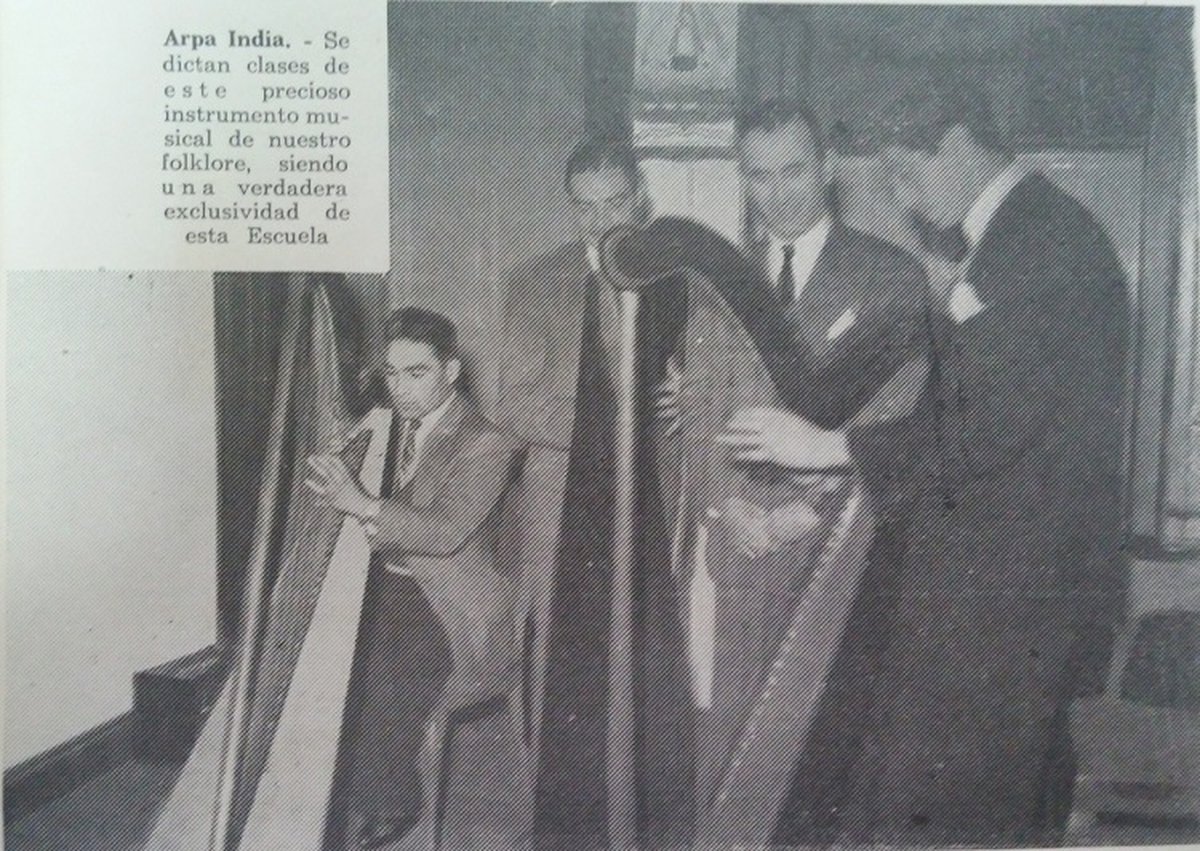 Los elementos de enseñanza iniciales fueron dos arpas indias, un combinado y una vitrola portátil, una nutrida colección de discos; también tres guitarras, piano, dos violines, bombos, quenas y cajas. Hacia fines de ese primer año ya existía una Asociación Cooperadora y se estaba armando una Biblioteca Folklórica.