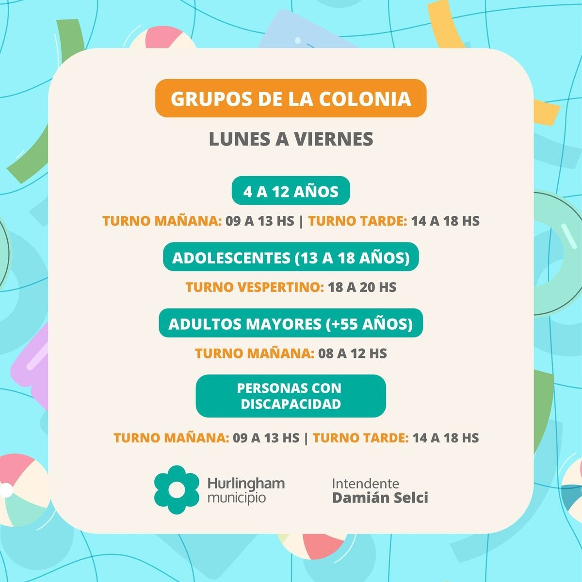 De cara a la temporada de verano, desde el Municipio de Hurlingham anunciaron que a partir de este martes, 17 de diciembre, abrirán la inscripción para sumarse a la colonia. Además, indicaron que habrá tres modalidades para niños, adolescentes y adultos mayores.