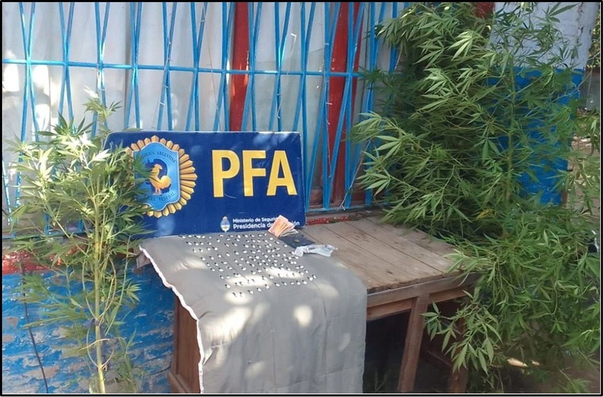De esta manera, los agentes detuvieron al sospechoso y secuestraron alrededor de ¼ de kilo de clorhidrato de cocaína de máxima pureza, varias dosis de picadura de marihuana, plantas de cannabis, dinero en efectivo, un celular y demás documentación de interés para la causa.