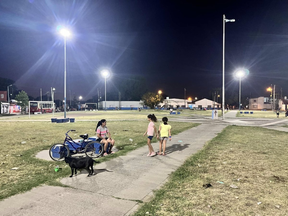 Dos humildes plazas de Merlo volvieron a iluminarse tras ataques vandálicos