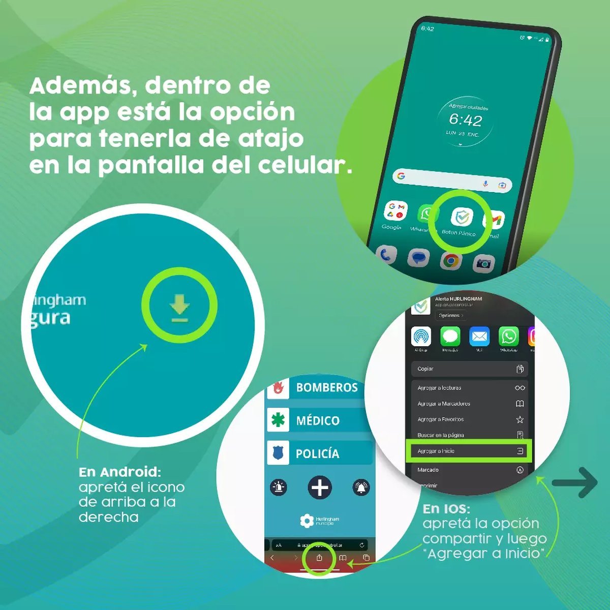 La App Hurlingham Segura es una alternativa a los botones antipánico que universaliza el acceso a los servicios de emergencia sin necesidad de contar con una alarma vecinal en las proximidades de la vivienda. Es una herramienta que todos los vecinos y vecinas pueden descargarse en su celular, y que vuelve más eficiente la disposición de recursos para las emergencias.