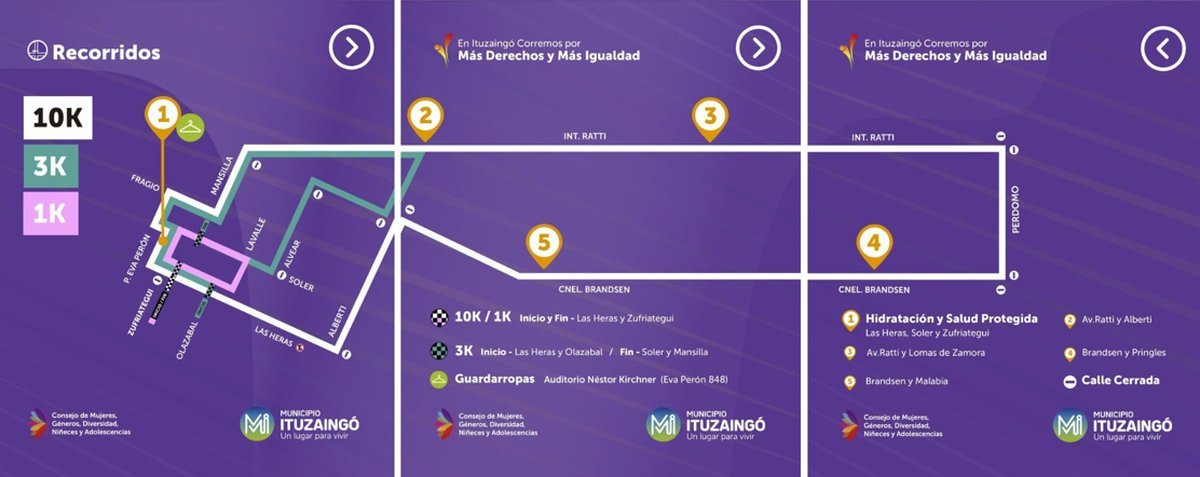 Si bien las inscripciones ya están cerradas, te acercamos el mapa de la 12° edición de la Maratón de Ituzaingó "Corremos por más derechos y más igualdad", que se realizará el domingo 9 a las 07:30 horas en la Plaza 20 de Febrero, ubicada en Soler y Zufriategui.