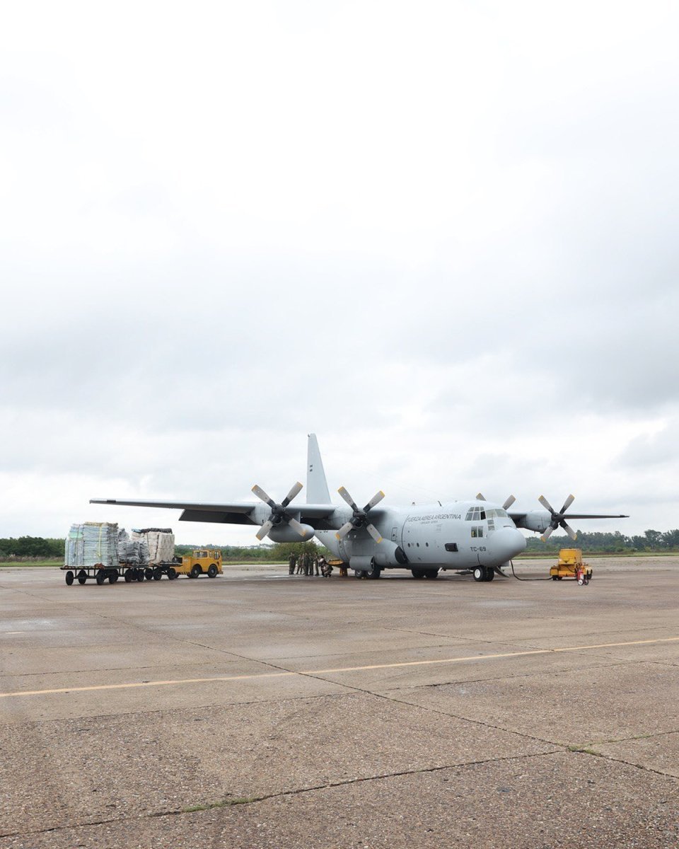 La asistencia fue coordinada por los ministerios de Capital Humano, Defensa y Seguridad de la Nación y contó con más de 20 toneladas de insumos, tales como colchones, frazadas, sábanas, ropa, alimentos no perecederos y agua gracias a un par de aviones "Hércules C-130", acostumbrados a prestar servicio en este tipo de catástrofes.