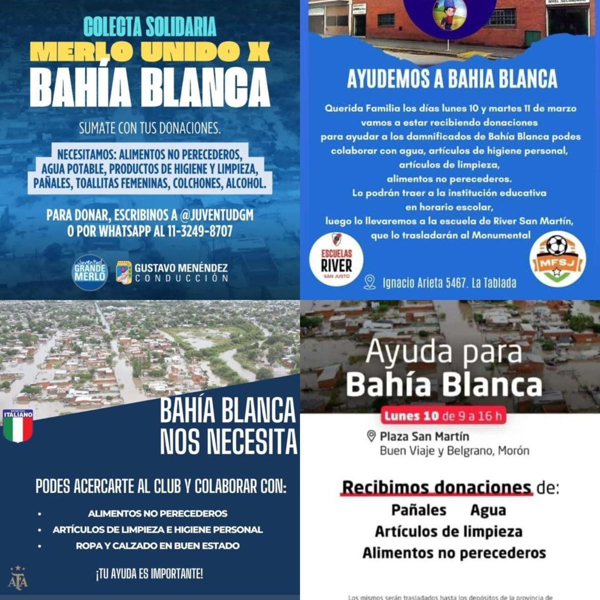A su vez, distintas asociaciones civiles y deportivas también se organizaron para aportar su granito de arena en la intención de colaborar con los bahienses que sufrieron las consecuencias de las fatales lluvias e inundaciones.