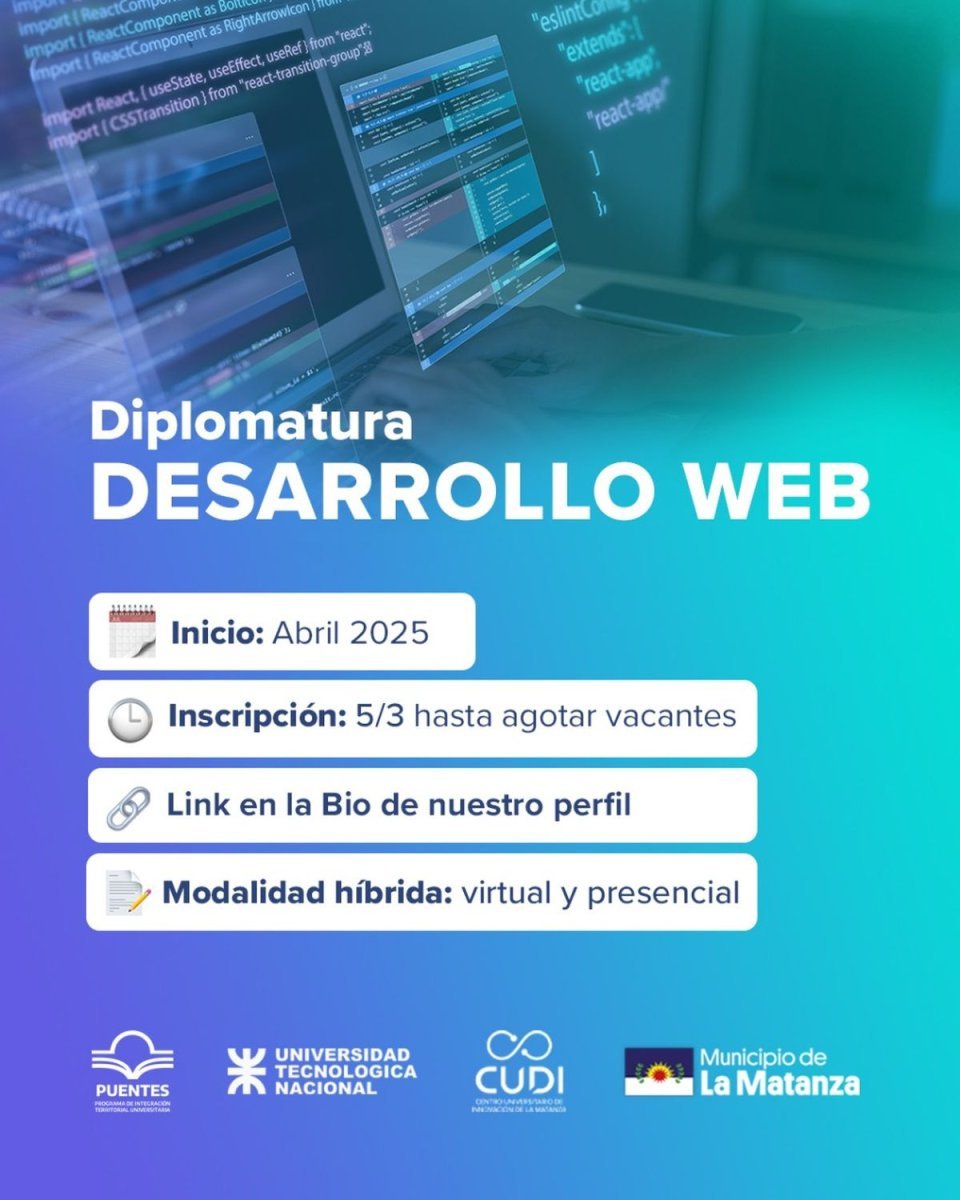 La Diplomatura en Desarrollo Web tiene como objetivo formar profesionales capacitados en el desarrollo de soluciones web, capaces de crear, implementar y optimizar aplicaciones y sitios web modernos, utilizando tecnologías y metodologías actuales en el campo del desarrollo web.