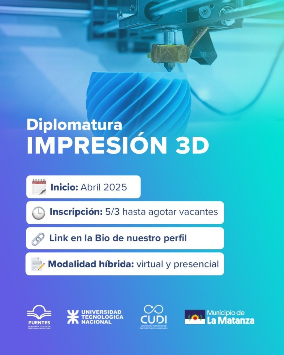 Diplomaturas en Desarrollo Web y Diseño e impresión 3D en La Matanza