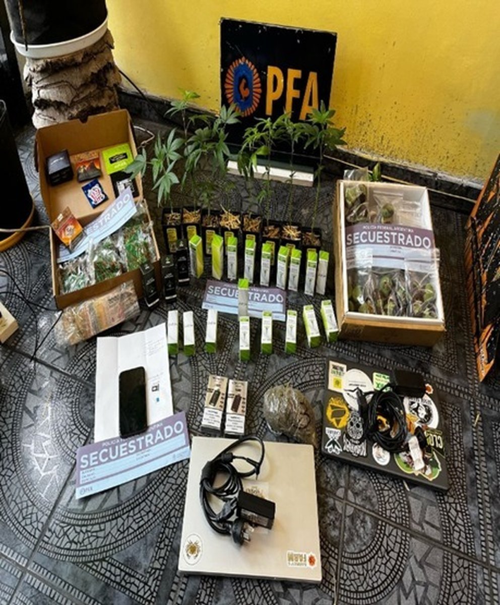 A su vez, secuestraron 317 plantas, 40 frascos de aceite y 29 flores de cannabis, 90 bidones y 57 botellas con fertilizantes y agroquímicos, 43 elementos comestibles (entre ellos galletitas), 17 cables canal de plástico para sistema de riego, 12 celulares, 11 lámparas alógenas con seis transformadores, tres notebooks, dos paneles de lámparas del tipo LED, dos tanques de agua, dos vehículos y dos vapers.
