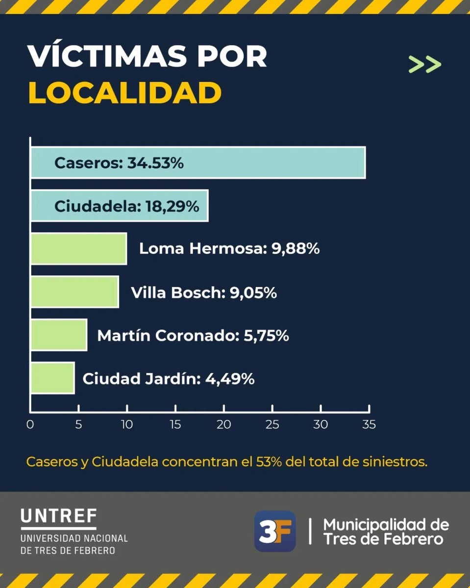 Cabe recordar que a comienzos del corriente año el Observatorio de Movilidad y Seguridad Vial del Estado comunal y la Universidad Nacional de Tres de Febrero (UNTREF) publicó el informe de siniestralidad local de 2024, donde se reveló que más de la mitad de los accidentes registrados sucedieron en las localidades de Caseros (34,53%) y Ciudadela (18,29%).
