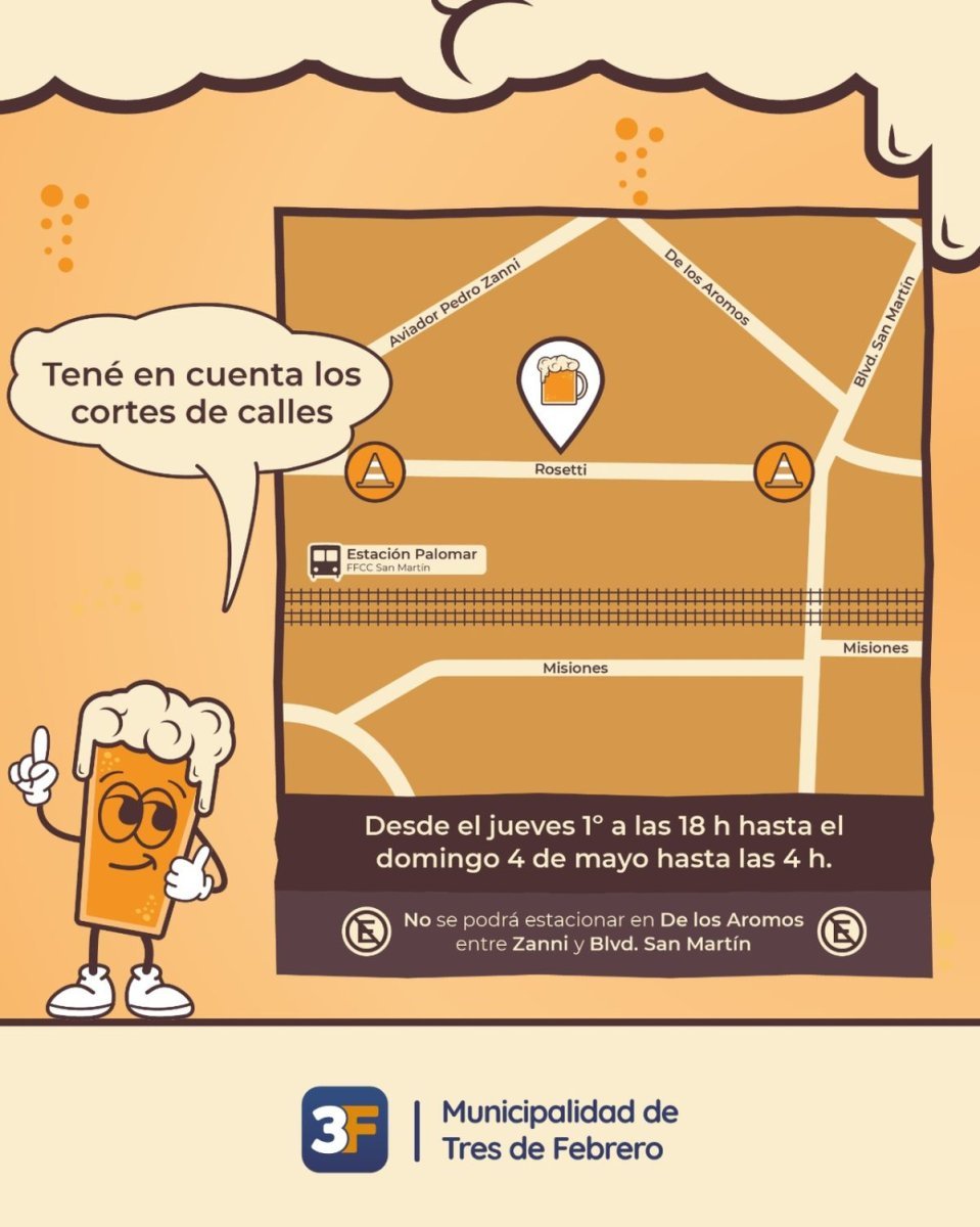La cita será este viernes 2 y sábado 3 de mayo de 12:00 a 01:00 horas en Rosetti y Blvd. San Martín, y desde el Municipio invitaron "a disfrutar de las mejores fábricas cerveceras de Tres de Febrero, foodtrucks y shows en vivo".