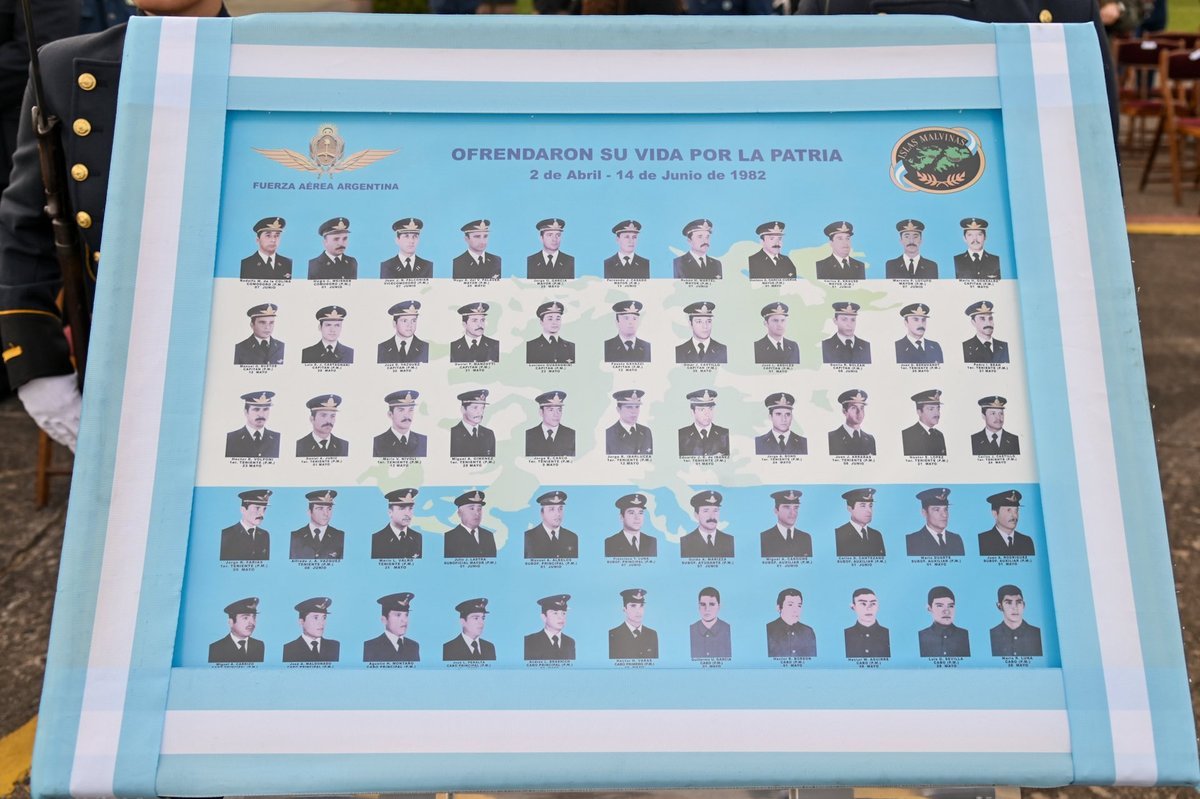 Al respecto, el titular de la mencionada cartera estatal aseguró: "Estamos aquí para recordar a esos jóvenes que volaban al combate con una valentía descomunal a bordo de sus Mirage, A-4 o Canberra, en donde solo tenían la certeza de que el cielo podía ser su tumba, pero también podía ser su gloria".