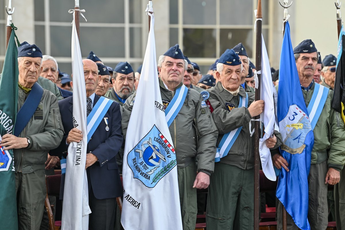 Allí reconocieron a los 55 miembros de la institución que dieron su vida en la Guerra de Malvinas y a los veteranos que volvieron para contar sus hazañas, mientras que también hubo un sobrevuelo de tres aviones (dos Fokker F-28 y un Hércules C-130) que dibujaron la bandera nacional en el firmamento.