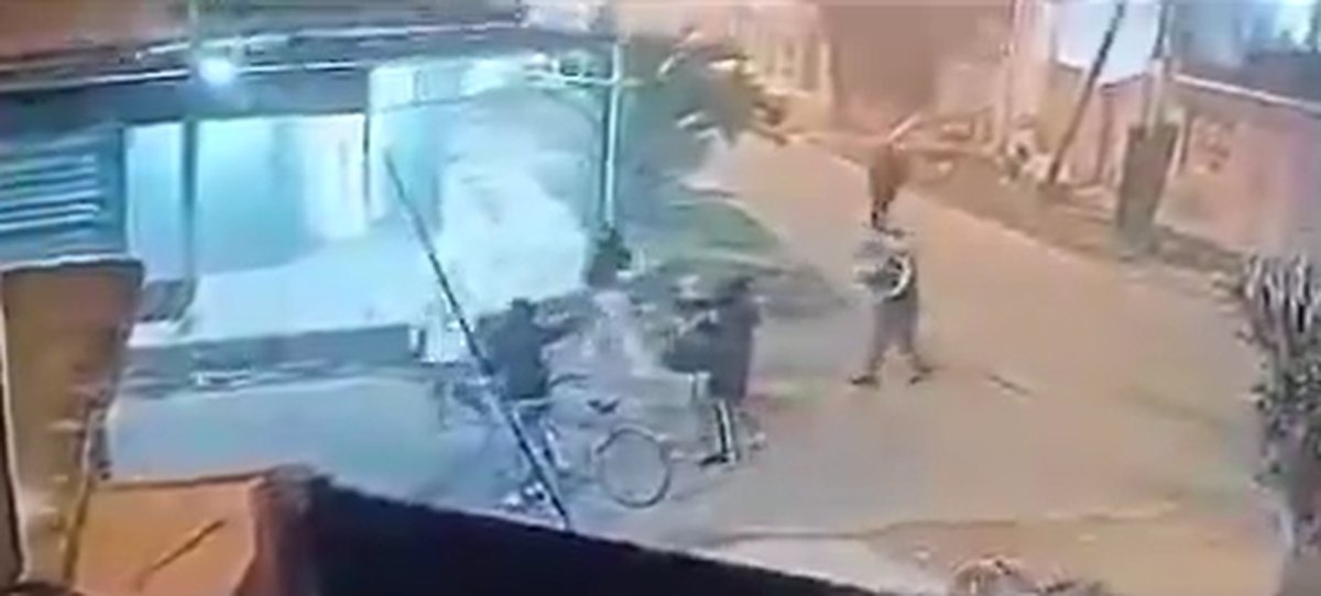 Según se observa en el video el agente caminaba hacia a un kiosco con tres allegados cuando fue sorprendido por una persona que apareció por detrás, en bicicleta, quien lo apuntó con un arma de fuego.